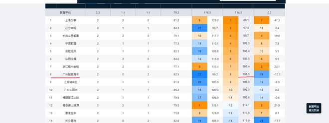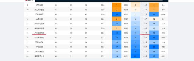 上赛季常规赛,广州男篮的百回合失分数为117.2分,联盟第五高。